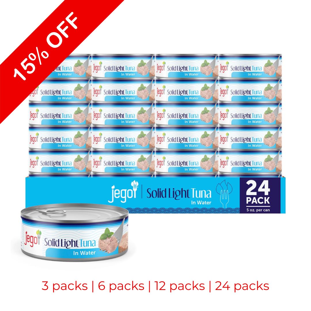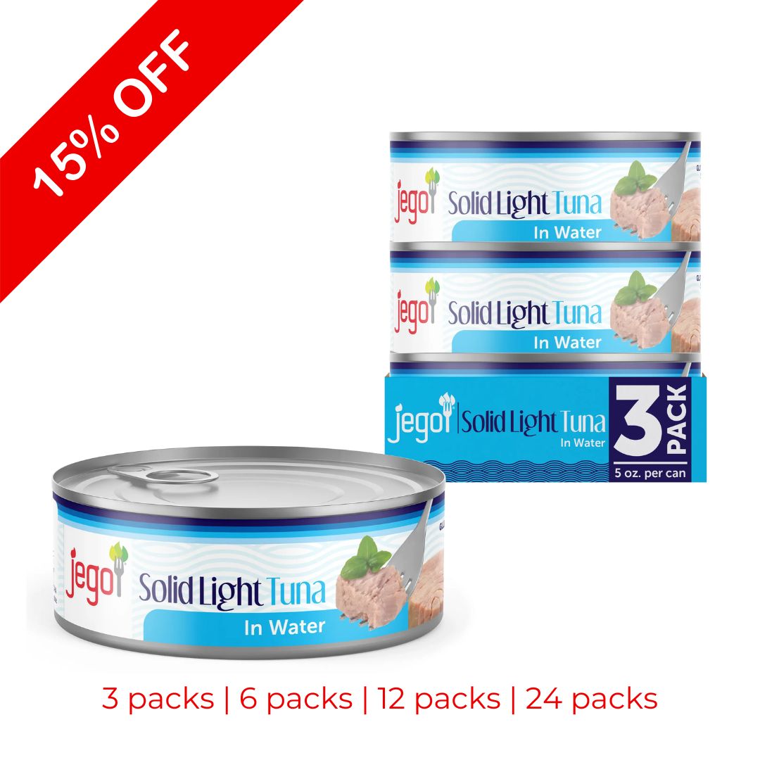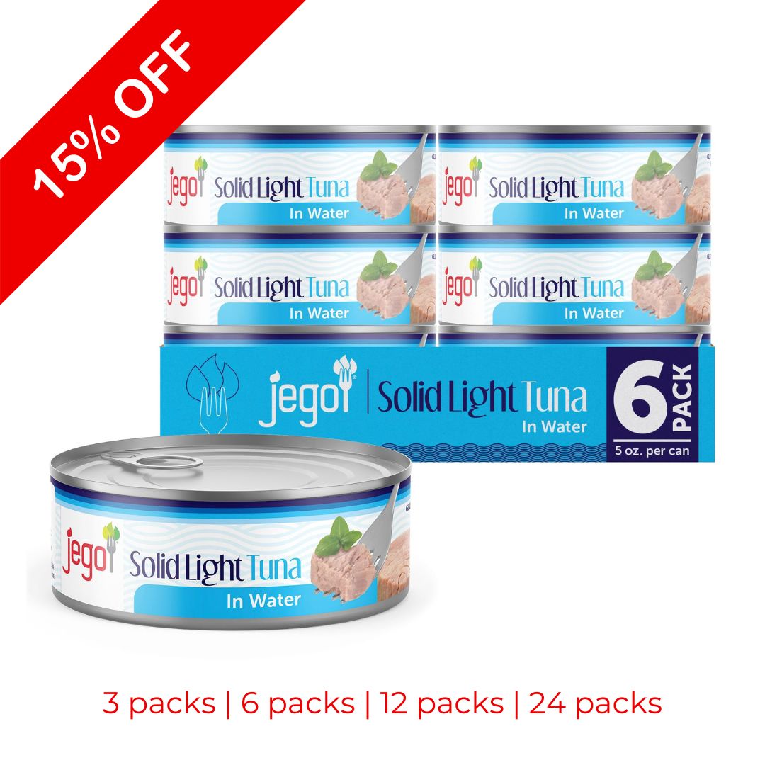 - DELICIOUS, FRESH | Jego solid tuna in water is a premium quality product with a great taste that features the best cuts from the tuna fish (real tuna loin). Made with simple, fresh, and natural ingredients: tuna, water, and salt.